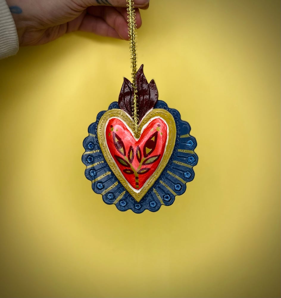 cœur sacré en terre cuite peinte et verni à la main (modèle unique) H12,5 x L10 cm